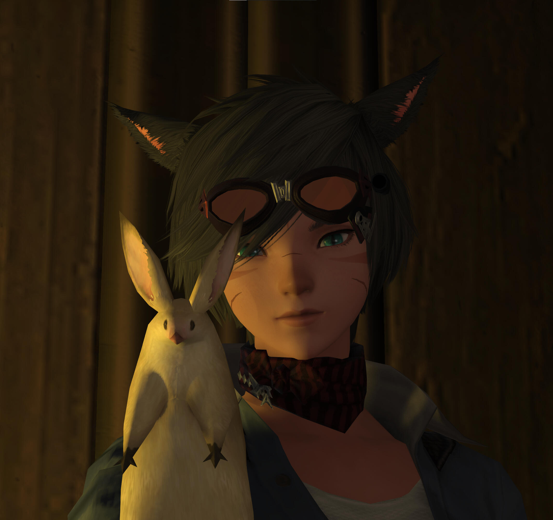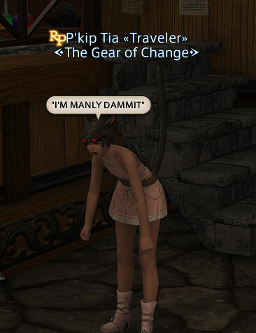 Runt - Perhaps the most notable of his features, P'kip is very small compared to other Miqo'te men. His frame leans toward feminine and his voice is androgynous at best. Those who can see aether would notice his is thin, and very weak. Aside from the top of his head, his ears and his tail, his body is completely smooth and hairless.